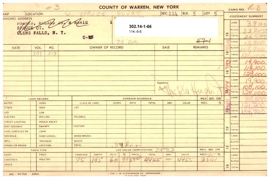 | 302.14-1-66 | 3 Spruce Ct | 0.34 | 210 - 1 Family Res | Glens Falls City Csd | Ward 2 |