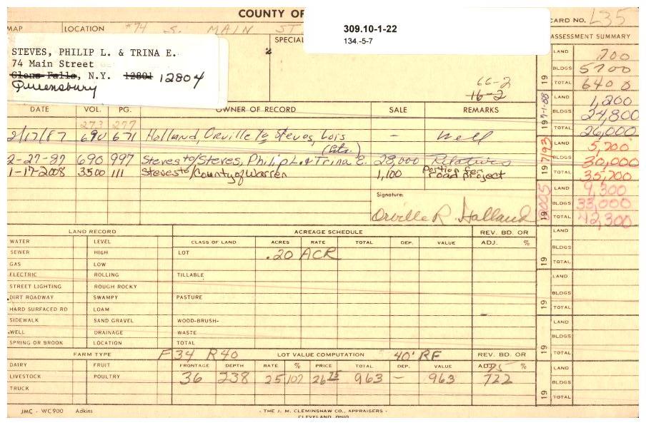 | 309.10-1-22 | 74 Main St | 0.24 | 210 - 1 Family Res | Queensbury Un.fr.sd | Ward 4 |