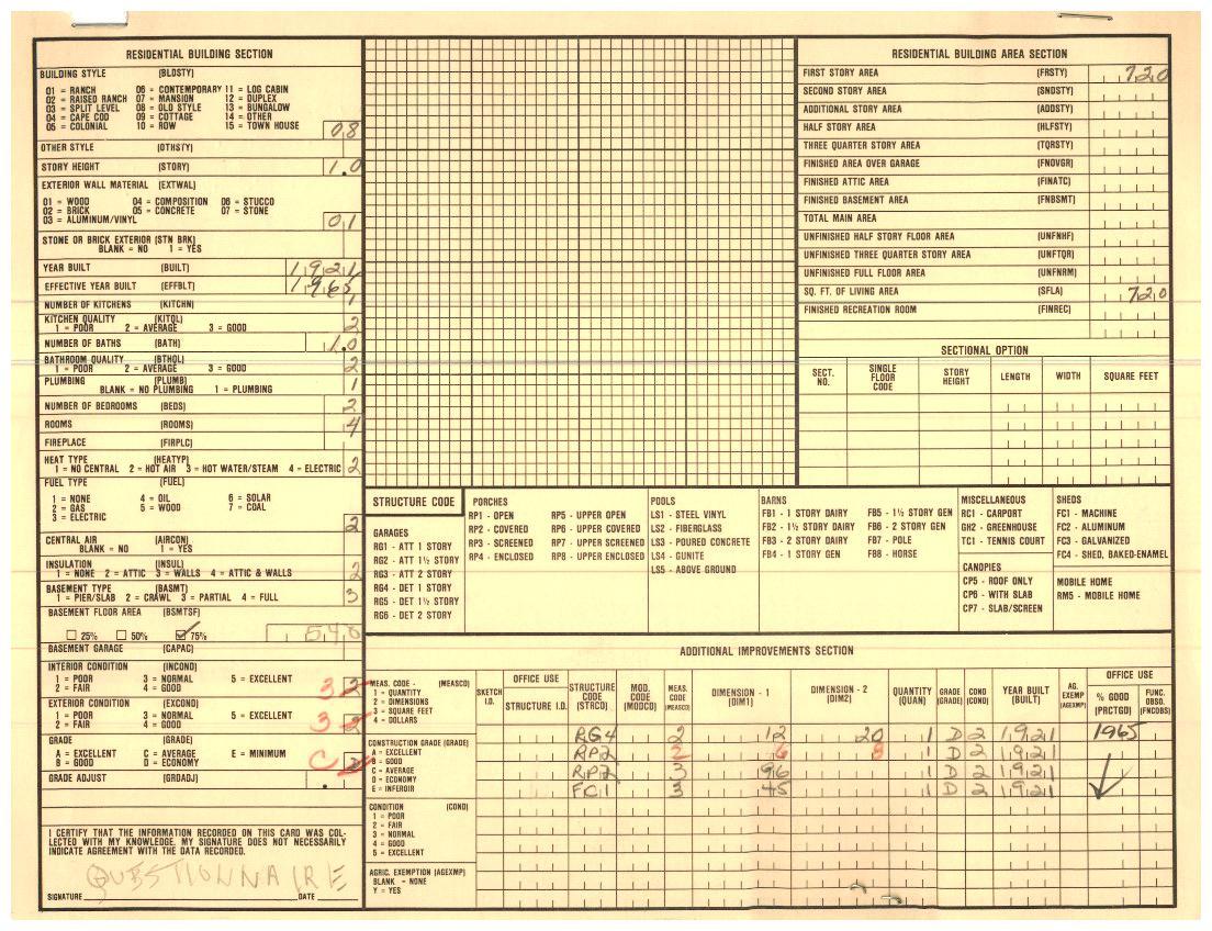 | Site # | Struct Code | Dim 1 | Dim 2 | SQ FT | # | Constr Grade | Overall Cond | Yr Built |